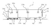 また、円弧部5の側面の左右と左右後方と後方とには、右方近接センサー27aと左方近接センサー27bと右後方近接センサー28aと左後方近接センサー28bと後方近接センサー29とが設けられる。各近接センサーは、それぞれ赤外線を出射する発光部と受光部とで構成され、発光部から出射されて反射した赤外線を受光部で受光する。制御部(図示せず)は、本体1の側方や後方と壁面や障害物の距離を検出する。