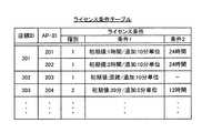 また、実施形態に係るコンテンツ利用管理システム1は、無線LANアクセスポイント2を複数備え、ライセンス条件情報DB24が、無線LANアクセスポイント2毎に、無線LANアクセスポイント2を特定する情報とライセンス条件の情報とを関連付けて記憶しており、ライセンス部34(ライセンス生成手段の一例に相当)が、ライセンス条件情報DB24に記憶されたライセンス条件に基づき、無線LANアクセスポイント2の通信エリアに応じたライセンス情報を生成する。  The content