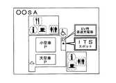 図4は、施設情報の概略的な表示例を示す図である。この施設情報画像には、このサービスエリア(あるいはパーキングエリア)に含まれる店舗やトイレの情報の他に、駐車エリア内の小型車エリアと大型車エリアの場所、電気自動車用の急速充電器設置場所、ITSスポットの場所などが含まれている。現時点では、急速充電器設置場所やITSスポットの場所は、駐車エリアの一部のごく狭いエリアに限られているが、本実施形態では、車両が導入路Dを走行中に施設情報の表示が行われるため、これらの場所を予め迅速に把握することが可能となる。 FIG. 4 is a diagram illustrating a schematic display example of facility information. In this facility information image, in addition to information on stores and toilets included in this service area (or parking area), the location of the small car area and large car area in the parking area, the location of the quick charger for electric vehicles, ITS spot locations are included. At present, the location of the quick charger and the location of the ITS spot are limited to a very small part of the parking area, but in this embodiment, the facility information is displayed while the vehicle is traveling on the introduction path D. Since this is done, it is possible to quickly grasp these locations in advance.