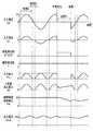 また、後記するように、本発明では、入力電圧が高く十分な入力電流が得られる位相と、入力電圧が低く入力電流が殆ど得られない位相(いわゆるゼロクロス付近)とで動作条件を切り替えるので、デジタル制御とするのが好適である。デジタル制御では、コントローラ51に内蔵される演算処理部が制御プログラムを実行することによって、各検出値に応じて図3で説明したような各ゲートの制御信号を出力する。  Further, as will be described later, in the present invention, the operating conditions are switched between a phase where the input voltage is high and a sufficient input current is obtained, and a phase where the input voltage is low and the input current is hardly obtained (so-called zero cross vicinity). Digital control is preferable. In digital control, an arithmetic processing unit built in the