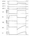 始めに、定常時の期間Aにおける基本的なスイッチング周期毎の動作について、図5及び図6を参照して説明する。スイッチング周波数は数十kHz〜200kHz程度の範囲が目安であり、仮に期間Aの駆動周波数を100kHzとすれば、図6の動作波形図の横軸は10数μsの時間を表している。(Period A with high input voltage)