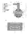 図1(a)は、本発明の実施の形態1におけるプラズマ処理装置の構成を示すもので、誘導結合型プラズマトーチユニットの長尺方向に垂直な面で切った断面図である。図1(b)は、誘導結合型プラズマトーチユニットの長尺方向に平行で、かつ、基材に垂直な面で切った断面図である。図1(a)は図1(b)の破線A−A’で切った断面図である。図1(b)は図1(a)の破線B−B’で切った断面図、また、図2は、図1に示した誘導結合型プラズマトーチユニットの組立構成図であり、各部品(一部)の斜視図を並べたものである。  FIG. 1A shows the configuration of the plasma processing apparatus according to