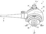 ここで、例えば図4に示すように、操作部本体32の内部には、吸引バルブ41に連設するシリンダ43が設けられている。このシリンダ43は、吸引バルブ41を着脱自在に装着可能となっており、吸引ボタン41aの配置に対応して挿入軸Oに重畳するよう、操作部本体32の左右幅方向の中央に配置されている。  Here, for example, as shown in FIG. 4, a