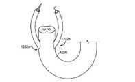 図12Aおよび図12Bは、上で考察された端部出口誘導チューブに対する後屈運動と同様な、側面出口誘導チューブの例における後屈位置を例示している実施形態の図である。図12Aは、一局面において、側面出口器具アセンブリ1220が、側面出口ポート1222aおよび側面出口ポート1222bとほぼ同一平面にある面において能動的に曲がる(視野基準に対してヨー)ということを例示する。図12Bは、別の局面において、側面出口器具アセンブリ1230が、側面出口ポート1232aおよび側面出口ポート1232b(隠されている)に対してほぼ垂直である面において能動的に曲がる(視野基準に対してピッチ)ということを例示する。機械的な構造であるので、アセンブリ1230の曲げ半径は、アセンブリ1220の曲げ半径よりも小さくなり得、他の寸法は、実質的には同じである。一部の局面において、側面器具アセンブリは、同時に、ヨーしたりピッチしたりし得、そして、アセンブリは、側面出口ポートの遠位でヨー/ピッチし得る。  12A and 12B are views of an embodiment illustrating a backbend position in an example side exit guide tube similar to the backbend motion for the end exit guide tube discussed above. FIG. 12A illustrates that in one aspect, the side