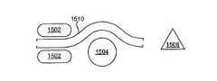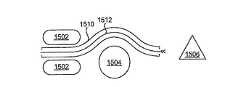 図15A〜図15Dは、患者の中の外科手術部位に到達するように中間の組織構造を通過して操作するために誘導プローブを使用することによって、本明細書において記述されているもののような、操作可能な可撓性の外科手術用器具と操作可能な可撓性の外科手術用器具アセンブリとを挿入する局面を例示する概略図である。挿入は、上で記述されたように、カニューレ(図示せず)を用いて、または用いることなくいずれかで、元々の開口または切開を経由するものであり得る。図15Aに示されているように、第1の中間の組織構造1502は、図1に示されているように、外科手術用器具または外科手術用器具アセンブリが、概ね、外科手術用器具または外科手術用器具アセンブリが体に入る旋回中心点で動作することを防止する。さらに、第2の中間の組織構造1504は、図2Bに示されているように、器具または器具アセンブリが第1の中間の組織構造1502通る位置と、標的の外科手術部位1506との間に存在する。器具または器具アセンブリは、外科手術部位に到達するために、中間の組織構造の間に、またはそれを迂回して誘導されなければならない。  15A-15D are similar to those described herein by using a guide probe to manipulate through an intermediate tissue structure to reach a surgical site in a patient. FIG. 6 is a schematic diagram illustrating an aspect of inserting an operable flexible surgical instrument and an operable flexible surgical instrument assembly. The insertion can be through the original opening or incision, as described above, either with or without a cannula (not shown). As shown in FIG. 15A, the first
