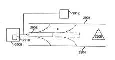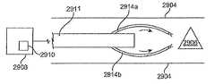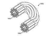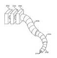 一部の例においては、器具または誘導チューブの遠位部分だけが、可撓性があり、近位部分が、硬い。他の例においては、患者の中にある器具または誘導チューブの全部分が、可撓性がある。さらに別の例においては、最遠位部分が、硬くなり得、そして、1つ以上の他の近位部分が、可撓性がある。可撓性の部分は、受動的であり得るか、または可撓性の部分は、能動的に制御可能(「操縦可能」)であり得る。かかる能動的な制御は、例えば、対向するケーブルの組(例えば、「ピッチ」を制御する1つの組と、「ヨー」を制御する直交する組;3つのケーブルが同様な行動を行うために使用され得る)を使用して行われ得る。例えば、小さな電気アクチュエータまたは小さな磁気アクチュエータ、形状記憶合金、電気活性ポリマ(「人工筋肉」)、空気式ベローもしくは空気式ピストンまたは水力ベローもしくは水力ピストンなどの他の制御要素が、使用され得る。器具または誘導チューブの一部分が、完全にまたは部分的に、別の誘導チューブの中にある場合において、受動的な可撓性または能動的な可撓性の様々な組み合わせが、存在し得る。例えば、受動的可撓性の誘導チューブの内側の能動的可撓性の器具が、充分な横方向の力を及ぼすことにより、周囲の誘導チューブを屈曲させ得る。同様に、能動的可撓性の誘導チューブは、能動的可撓性の誘導チューブの内側の受動的可撓性の器具を屈曲させる。誘導チューブおよび器具の能動的可撓性の部分は、いっせいに働き得る。可撓性の器具および可撓性の誘導チューブと、硬い器具および硬い誘導チューブとの両方に対して、中央の長手方向軸からより遠くに配置された制御ケーブルが、様々な設計におけるコンプライアンスの条件に依存して、中央の長手方向軸のより近くに配置されたケーブルを上回る機械的利益を提供し得る。 In some examples, only the distal portion of the instrument or guide tube is flexible and the proximal portion is stiff. In other examples, the entire portion of the instrument or guide tube in the patient is flexible. In yet another example, the most distal portion can be stiff and one or more other proximal portions are flexible. The flexible portion can be passive or the flexible portion can be actively controllable (“steerable”). Such active control can be used, for example, for a pair of opposing cables (eg, one set that controls “pitch” and an orthogonal set that controls “yaw”; three cables are used to perform similar actions. Can be done using). Other control elements such as, for example, small electric actuators or small magnetic actuators, shape memory alloys, electroactive polymers (“artificial muscles”), pneumatic bellows or pneumatic pistons or hydraulic bellows or hydraulic pistons can be used. There can be various combinations of passive flexibility or active flexibility where a portion of the instrument or guide tube is wholly or partially within another guide tube. For example, an active flexible instrument inside a passive flexible guide tube can bend the surrounding guide tube by exerting sufficient lateral force. Similarly, the active flexible guide tube flexes the passive flexible instrument inside the active flexible guide tube. The guide tube and the active flexible part of the instrument can work together. For both flexible instruments and flexible guide tubes, and hard instruments and hard guide tubes, control cables located farther from the central longitudinal axis can be a requirement for compliance in various designs. Depending on the, it may provide mechanical benefits over cables placed closer to the central longitudinal axis.
