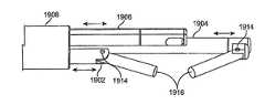 図18Fはさらに、一局面において、平行運動メカニズム1884が充分に長く、画像キャプチャコンポーネント1880が、誘導チューブ1882の中央と依然として整列されている間に、独立して制御可能な器具1888aおよび独立して制御可能な器具1888bの平行運動メカニズムと手首メカニズムとエンドエフェクタとが、誘導チューブ1882における中間の位置の出口ポート1890aと出口ポート1890bとを通って延び、そして、動くことを可能にするということを示す。平行運動メカニズム1884が、誘導チューブ1882との整列から離れるように画像キャプチャコンポーネント1880を動かしたときに、器具1888aおよび器具1888bが、画像キャプチャコンポーネント1880の下を延びることにより、外科手術部位に到達する。  FIG. 18F further illustrates that in one aspect, the independently