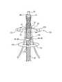 特許文献1のカテーテルにおいては、ワイヤ内腔(以下、副管腔という)をもつ2本のポリマーチューブ(以下、サブチューブという)を、フッ素系樹脂材料などからなる薄い内層の外面に沿って敷設し、このサブチューブの内部に操作線が挿通されている。特許文献1において管状本体(シース)を成形するにあたっては、ワイヤ内腔の内部に加圧流体を注入しておき、管状本体の熱成形の際にワイヤ内腔に負荷される圧縮力に抗して内径を維持することとしている。 In the catheter of Patent Document 1, two polymer tubes (hereinafter referred to as subtubes) having wire lumens (hereinafter referred to as sublumens) are laid along the outer surface of a thin inner layer made of a fluorine-based resin material or the like. An operation line is inserted into the sub tube. In forming a tubular body (sheath) in Patent Document 1, a pressurized fluid is injected into the inside of the wire lumen to resist the compressive force applied to the wire lumen during thermoforming of the tubular body. To maintain the inner diameter.