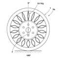 In the coordinate system around the tire axis with the vertical line rising vertically from the tire axis being 0 °,