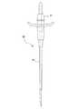 穿刺針53は、図15(A)に示すように、基本的に従来公知の一般的な構成を有し、先端に鋭利な針先部55aを有する針管からなる内針55と、該内針の基端に設けられたハブ56とを有する。本実施態様の穿刺針53は更に、マーカー57が内針55上の所定位置に設けられている。  As shown in FIG. 15A, the