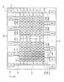 このようにすれば、第1の集積回路装置と第2の集積回路装置を長辺方向に長細い矩形状に構成できる。また、受信端子が設けられる超音波素子アレイの端部と、第1の集積回路装置の長辺方向に並んだ複数の受信回路を対向させ、送信端子が設けられる超音波素子アレイの端部と、第2の集積回路装置の長辺方向に並んだ複数の送信回路を対向させることができる。 In this way, the first integrated circuit device and the second integrated circuit device can be configured in a rectangular shape that is long in the long side direction. Also, the end of the ultrasonic element array in which the receiving terminal is provided and the end of the ultrasonic element array in which the plurality of receiving circuits arranged in the long side direction of the first integrated circuit device are opposed to each other, A plurality of transmission circuits arranged in the long side direction of the second integrated circuit device can be opposed to each other.