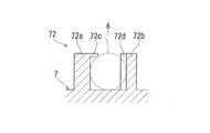しかも、この実施形態では前記の突壁部72a,72bにそれぞれ、ケーブル6の抜け止めのための突起部72c,72dが設けられている。図17に模式的に示すように外周側の突壁部72aには、ケーブル6のシース60の外周面に当接するように矩形片状の突起部72cが設けられている。一方、内周側の突壁部72bには、屈曲するケーブル6のシース60に食い込むように、断面が楔状の突起部72dが設けられている。  In addition, in this embodiment, the protruding