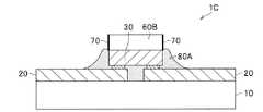 次に、本発明の第4実施形態に係る発光装置1Cは、図6に示すように、発光装置1のように光反射性樹脂50を備えておらず、LEDチップ30の周囲に接着材料80Aが直接形成されていることを特徴としている。すなわち、発光装置1Cは、図6に示すように、発光素子がLEDチップ30と、LEDチップ30上に設置された蛍光体層60Bとから構成されており、当該蛍光体層60Bの側面に撥脂部70が形成されている。また、発光装置1Cは、図6に示すように、接着材料80AがLEDチップ30と蛍光体層60Bの境界面よりも下の領域に形成されており、具体的にはLEDチップ30の周囲を取り囲むように形成されている。このような構成を備える発光装置1Cは、前記した発光装置1と同様に、LEDチップ30から放出され、蛍光体層60Bの側面から出射される光の進行が接着材料80Aによって妨げられることがないため、光の取り出し効率を向上させることができる。  Next, as illustrated in FIG. 6, the