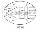 図8Dに示すように、閉塞具104を、それに作動的に接続された観察部材167を受け入れるようにさらに構成することができる。より詳細には、円錐状先端部172を、円錐状先端部172の表面と同一平面に向けられる1つまたは複数の観察窓169があるように構成することができる。観察窓169は、たとえば光ファイバケーブルまたは超音波プローブ等の観察部材を選択的に受け入れることができる観察部材チャネル171と連通している。観察部材は、ナビゲーション部材の使用に加えるかまたはその代りであり得る。観察部材により、外科医は、挿入中の外傷を最小限にするように周囲組織および脳機能上重要な組織構造をリアルタイムで(すなわち挿入中に)観察することができる。  As shown in FIG. 8D, the