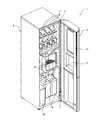 なお、図3において、前面扉3の左端部の収納空間部12に、容器保持部材17は2つ、副資材収容部材18は1つ配設されており、一方の容器保持部材17は飲料容器Aを保持した状態を示し、他方の容器保持部材17は飲料容器を保持しない状態を示している。このように、例えば、収納空間部12の上部及び中央部に容器保持部材17、下部に副資材収容部材18を配設することができる。  In FIG. 3, two