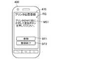 また、エリア情報登録処理によれば、利用者は携帯端末400を所持して、登録したい地点に移動して、所定の登録操作を行うだけで、設定したいエリアを規定するための地点(例えば、図2の地点P1〜P4)を示す位置情報(座標情報LD)を容易に登録できる。そして、生成部317は、登録された地点に基づいてエリア情報222を生成する。この結果、3個以上の地点に基づいて規定されるエリアを示すエリア情報222を容易に生成することができる。したがって、利用者は、携帯端末400を用いて、エリア情報222を容易に対象プリンタに登録することができる。  In addition, according to the area information registration process, the user possesses the