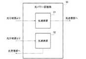 光パワー調整部30の詳細ブロック構成図を図4に示す。光パワー調整部30は、光減衰部31、32を有する。光減衰部31、32として、可変光アッテネータ等の光素子を用いることができる。  A detailed block diagram of the optical