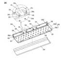 同図に示すように、モジュール本体210の底面には、内部に収容された水を排出する排出孔216が形成される。同図においては、モップ部240が装着される本体ケース210aの底面に複数の排出孔216が形成されている場合を例示している。  As shown in the figure, a