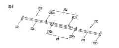 加圧部材は、モジュール本体210に押圧操作可能に設置される。モジュール本体210への加圧部材の設置構造に関連して、モジュール本体210には、延長部221、231の移動をガイドするように一方向に延びるガイド溝217が形成されてもよい。同図においては、ガイド溝217がモジュール本体210の長手方向に延設され、ガイド溝217に第1加圧部材220及び第2加圧部材230がそれぞれ設置されている場合を例示している。  The pressure member is installed on the module