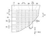 なお、本実施形態に係るALD装置1は、300mm×350mmのサイズの基板への成膜に対応するように構成されている。具体的には、ALD装置1では、供給路13が13本設けられ、各供給路13に供給口14がそれぞれ13本設けられている。また、ALD装置1では排出路23が13本設けられ、各排出路23に排出口24がそれぞれ13本設けられている。しかし、供給路13、供給口14、排出路23、及び排出口24の本数は適宜決定可能である。 Note that the