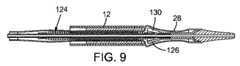 保証機構98は、内側シャフトの近位端部分96の雄ねじと噛み合う雌ねじを含む。コレット102の形態のプッシャ要素100およびシャフト係合部材は、バルーンカテーテルシャフト26上に近位端部分96内で取り付けられる。コレット102は、さらに以下に述べられるように、コレットによってバルーンカテーテルシャフトが長手方向および回転方向に自由に移動することが可能である第1の状態と、このコレットがバルーンカテーテルシャフトに摩擦係合し、内側シャフト90に対してのバルーンカテーテルシャフトの回転移動および長手方向移動を防ぐ第2の状態との間で保証機構によって操作されるように構成されている。  The assurance mechanism 98 includes an internal thread that mates with an external thread on the