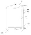 図1は、本実施の形態の電子機器の一例である携帯電話機10の表面の外観を示す外観図である。図1を参照して、携帯電話機10は、ストレート型の形状をしており、平面矩形の筐体Cを有する。マイク18は、筐体Cに内蔵され、内蔵されたマイク18に通じる開口OP2は筐体Cの長さ方向における一方の表面に設けられる。図示しないスピーカ22は、筐体Cに内蔵されている。内蔵されたスピーカ22に通じる開口OP1は、筐体Cの長さ方向における他方の表面に設けられる。ディスプレイ30は、モニタ画面が筐体Cの表面側から見えるように取り付けられる。ディスプレイ30にはLCDモニタが利用され