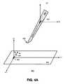 図4Aは、図1のスタイラスシステム148の部分のようなスタイラスシステムの部分420の一実施形態を表す。スタイラスシステムの部分420は、送信コイル422及び受信コイル424を有する。送信コイル422は、図3Aの送信コイル321と対応してよい。受信コイル424は、図3Bの受信コイル393と対応してよい。送信コイル422は、ディスプレイ表面421に関連する第1の座標系に対して位置付けられてよい。一例において、ディスプレイ表面421は、図2のタッチスクリーンインターフェース210のようなタッチスクリーンインターフェースに関連してよい。  FIG. 4A depicts one embodiment of a