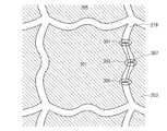 条件2の具体例を、図3に示す。隣接する2つの画素電極201、203の間に隙間219が形成されており、隙間219は三カ所の間隔が等しい部分301、303、305を有する。そして、三カ所における各々の間隔の中点を線分で結ぶと、一つの頂点307を有する。条件2を適用することで、図1における画素電極の突出する部分103が形成される。  A specific example of condition 2 is shown in FIG. A