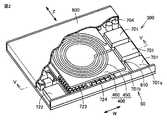 送電ユニット400の周囲に配置される第1機器としては、スイッチング電源701の高背部701a、FCサブ基板704、ファン705、ファン710、ヒートシンク711、ファン712、ヒートシンク713、ファン714,715、フィルタインダクタ716、フィルタコンデンサ717、ファン718,719、および、フィルタインダクタ720が挙げられる。  The first device disposed around the