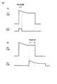 次の図5(B)は、補色フィールドであるYe(黄色)フィールドを挟んで、その前側にG(緑色)フィールド、後ろ側にR(赤色)フィールドが位置する場合の、G用の半導体発光素子による光源とR(赤色)用の半導体発光素子による光源の各発光波形を示す。 FIG. 5B shows a semiconductor light emission for G in the case where a G (green) field is located on the front side and an R (red) field is located behind the Ye (yellow) field which is a complementary color field. Each light emission waveform of the light source by an element and the light source by the semiconductor light emitting element for R (red) is shown.