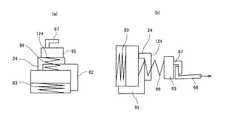 ここでは、図11(a)に示すように、開閉カバー8を開いた状態で、記録ヘッド24のノズル面124を覆うキャップ部材65を備えている。このキャップ部材65は、記録ヘッド24との間に設けた弾性部材66によってノズル面124に押し付けられている。  Here, as shown in FIG. 11A, a
