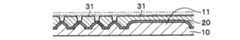 バッファ層形成工程は、サファイア基板10上にバッファ層20を形成する工程である。バッファ層形成工程では、具体的には図9Dに示すように、凸部11が形成されたサファイア基板10上に、例えばスパッタリングによってバッファ層20を形成する。バッファ層形成工程は省略することもできるが、行うことが好ましい。バッファ層20は、例えば図9Dに示すようにサファイア基板10を被覆する層状であるが、完全に層状に被覆される必要はなく層厚さを薄くすることで斑状に一部でサファイア基板10が露出していてもよい。  The buffer layer forming step is a step of forming the