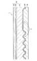 なお、凸部11の配置パターンでは、第1ユニットKU及び第2ユニットTUの対向する頂角部分が6箇所形成されることになる。そして、ユニット同士の対向する6箇所の頂角部分では、前記したサブユニット単位あるいは領域単位であると、仮想的な菱形の頂角を4カ所対向させた部分と、仮想的な菱形の頂角を5カ所対向させた部分とが形成される。また、ユニット中央において、仮想的な菱形の頂角を3つ対向させた部分が形成されることになる(従来の構成は例えば図10A参照:図10Aでは、頂角は6つと3つの2種類のみの配置)。つまり、第1ユニットKU及び第2ユニットTUによるユニットパターンとすることで、仮想的な頂角の位置において、サブユニット単位あるいは領域単位で、頂角の数の異なる部分が設定され、凸部11の間隔を調整しやすい配置にすることができる。  In addition, in the arrangement pattern of the