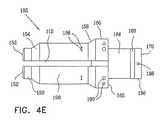 ここで、手動係合可能要素102を示す図4A〜4Eがさらに参照される。手動係合可能要素102は、好ましくは、前方向きのほぼ円形状のエッジ152を有するほぼ円筒状の前方部分150を含む、DELRIN(登録商標)またはステンレス鋼のような成形または機械加工された硬質プラスチックまたは金属で好ましくは形成されている一体形成されたほぼ円形状の対称本体を備える。前方部分150の後方には、好ましくは、後方に向かって増加する外径を有する前方のほぼ円錐状の移行部分154が設けられている。  Reference is now further made to FIGS. 4A-4E showing the manually