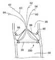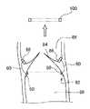 プレジェット66としては、ゴアテックス(登録商標)EPTFEパッチII(型番:PC−0625)を適切な大きさに切り抜いたものが用いられる。なお、プレジェット66の代わりに、柔軟性のある細いプラスチックチューブに縫合糸60を通してもよい。  As the pre-jet 66, Gore-Tex (registered trademark) EPTFE patch II (model number: PC-0625) cut out to an appropriate size is used. Instead of the pre-jet 66, the