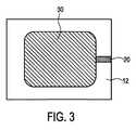 図3は、第2有機領域30がシャドーマスクを介して基板12上、第1活性領域の最初にコーティングされた構造の上にコーティングされる第3ステップの後のOLED構造の上面図を示す。第2有機領域30は堆積され、マスクは、第1活性領域の第1OLEDスタックが、OLED構造の第2有機領域30の有機材料によって覆われるよう作成される。  FIG. 3 shows a top view of the OLED structure after a third step in which the second