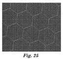いくつかの実施形態では、導電性微小パターンを画定する導電トレースは、5つの隣接するセル、好ましくは4つの隣接するセル、より好ましくは3つの隣接するセル、更により好ましくは2つの隣接するセルの合わせた縁部の長さよりも大きな距離にわたってほぼ直線的である区分を含まないように設計される。より好ましくは、微小パターンを画定するトレースは、単一のセルの縁部の長さよりも大きな距離にわたって直線的である区分を含まないように設計される。したがって、いくつかの実施形態では、微小パターンを画定するトレースは、長い距離、例えば、10センチメートル、1センチメートル、又は更に1ミリメートルを超えて直線的であることはない。直前に述べた、最小の長さの直線区分を有するパターンは、ディスプレイの可視性に最小限の障害しか生じさせない利点を有するタッチスクリーンセンサにとって特に有用である。 In some embodiments, the conductive traces that define the conductive micropattern comprise five adjacent cells, preferably four adjacent cells, more preferably three adjacent cells, and even more preferably two adjacent cells. It is designed not to include sections that are substantially linear over a distance greater than the combined edge length. More preferably, the traces defining the micropattern are designed not to include sections that are linear over a distance greater than the length of a single cell edge. Thus, in some embodiments, the traces that define the micropattern are not linear beyond a long distance, eg, 10 centimeters, 1 centimeter, or even 1 millimeter. The pattern described above, with a minimum length of linear segments, is particularly useful for touch screen sensors that have the advantage of causing minimal disruption to display visibility.
