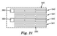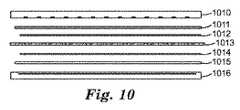 ディスプレイのピクセルパターンとの干渉を極小化し、ユーザー又は見る人の裸眼によるパターン要素(例えば、導電体の線)の可視性を回避するために、導電パターン要素の最小寸法(例えば、線又は導電トレースの幅)は、およそ50マイクロメートル以下、又はおよそ25マイクロメートル以下、又はおよそ10マイクロメートル以下、又はおよそ5マイクロメートル以下、又はおよそ4マイクロメートル以下、又はおよそ3マイクロメートル以下、又はおよそ2マイクロメートル以下、又はおよそ1マイクロメートル以下、又はおよそ0.5マイクロメートル以下であるべきである。 In order to minimize interference with the pixel pattern of the display and avoid the visibility of pattern elements (eg conductor lines) by the naked eye of the user or viewer, the minimum dimensions of the conductive pattern elements (eg lines or conductive traces) Is about 50 micrometers or less, or about 25 micrometers or less, or about 10 micrometers or less, or about 5 micrometers or less, or about 4 micrometers or less, or about 3 micrometers or less, or about 2 micrometers Should be no more than meters, or no more than about 1 micrometer, or no more than about 0.5 micrometers.