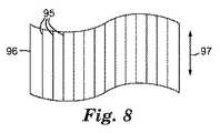図7aは、小さい静電容量タッチスクリーンのためのマトリックスセンサを示す。電極の2つのパターン(91及び92)が相互接続し、コネクタパッドが可撓性基材(例えば、PET)上に印刷される。2つのパターンが次に共に組み合わされて、平行な平面上に2層の電極を形成し、示されるように上部平面上の電極が、下部平面上の導電体と直交する(図7b参照)。場合により、下部電極平面の下にシールド(図示されない)が必要とされる。 FIG. 7a shows a matrix sensor for a small capacitive touch screen. Two patterns of electrodes (91 and 92) are interconnected and connector pads are printed on a flexible substrate (eg, PET). The two patterns are then combined together to form two layers of electrodes on parallel planes, with the electrodes on the top plane orthogonal to the conductors on the bottom plane as shown (see FIG. 7b). In some cases, a shield (not shown) is required below the lower electrode plane.