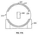 図13を再び参照すると、この実施形態では、取出アセンブリ210は、3つの主構成部品:カバー部212、取出ハウジング214、および取出部材216から構成されている。図17および図17Aを参照すると、取出ハウジング214は、本体201を有するものとして示されている。本体201は、円形基部215を有している。半円形の第1の壁217が、基部215の一部の周りに延在しており、外側上面218および内部上面219を有している。縁220(図17)が外側上面218と内部上面219との間に延在しており、これによって、内部上面219が外側上面218から離間しており、棚を形成している。通路221が、内部上面219から基部215に延在している。コネクター203が、基部215の(半円壁が延在する部分と直接的に向き合った)部分に沿って延在している。コネクター203は、基部215から連続的に延在する表面205を有する楕円形開口を有している。第2の表面206が、コネクターの開口の口部に位置しており、垂直方向に延在する縁207が第1および第2の表面205,206間に延在するように、第1の表面205から離間している。第2の壁209がコネクター203の上面208から上方に延在している。Referring back to FIG. 13, in this embodiment, the