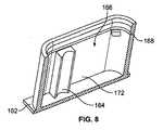 図5Aおよび図5Bを参照すると、空洞または凹部126が、カバー部122の内部に形成されている。図示されているように、空洞126を形成するために、カバー部122を構成する材料の厚みがカバー部122の周囲を囲んでいる。一実施形態では、カバー部122は、試験紙が取出アセンブリ130(図4)から取り出されるように取出アセンブリ130を作動させるように機能することができる。また、カバー部122は、取出アセンブリ130の内部がユーザーまたは外部雰囲気によって汚染されるのを防ぐために、取出アセンブリ130のOリング148と協働し、取出アセンブリ130に対して気密シールをもたらすのを助長するように機能するようになっているとよい。  Referring to FIGS. 5A and 5B, a cavity or