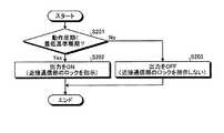 図2に示すように、バッテリ電圧が閾値より低い場合(ステップS101,Yes)、低電圧検出部144は、出力をONにする(ステップS102)。低電圧検出部144の出力がONになるということは、低電圧検出部144から近接通信部110に対してロックの指示がなされることを意味する。  As shown in FIG. 2, when the battery voltage is lower than the threshold value (Yes at Step S101), the low voltage detection unit 144 turns on the output (Step S102). The fact that the output of the low voltage detection unit 144 is ON means that the lock instruction is issued from the low voltage detection unit 144 to the