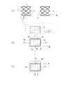 FIG. 4A shows an example of the shape of the stent W that is a workpiece. The stent W is formed by laser cutting a metal pipe along a predetermined design (for example, the design of FIG. 3), and polishing and annealing. The cross-sectional shape of the wire D along the line CC is formed in, for example, a rectangular shape. FIG. 4B illustrates an example where the surface of the wire D in FIG. 4A is coated with a