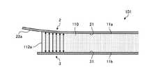 従来技術に係る粘着部材101は、例えば図9に示すように、粘着部材本体110の長手方向における端面112aが、粘着部材本体110の粘着面11a,11bに対して直角に形成されている。そのため、粘着部材本体110の端面112a近傍において、粘着部材本体110の強度(粘着部材本体110の厚み方向に働く力に対する強度)が一定となる。  For example, as shown in FIG. 9, the pressure-