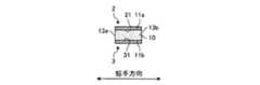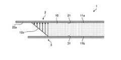 一方、本実施形態に係る粘着部材1は、図11に示すように、粘着部材本体10の長手方向における端面12aが、粘着部材本体10の粘着面11a,11bに対して直角以外の角度に傾斜している。そのため、粘着部材本体10の端面12a近傍において、粘着部材本体10の強度(粘着部材本体10の厚み方向に働く力に対する強度)が一定ではなくなる。すなわち、粘着部材本体10の端面12a近傍において、鋭角θ1側の強度が低くなり、鈍角θ2側の強度が高くなる。On the other hand, as shown in FIG. 11, in the adhesive member 1 according to the present embodiment, the