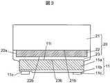 図3は、蛍光体含有膜22の面積が発光素子11の面積より大きい場合の発光素子11及び構造体20の垂直断面図である。この場合であっても、間隙11gの直上の領域の少なくとも一部は蛍光体含有膜12に覆われない。  FIG. 3 is a vertical sectional view of the