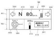 そして、これらのうち車速表示部300とシフトポジション表示部310と燃料残量表示部320と方向指示表示部330とでなる所定情報D1は、第1の表示モードM1の場合と同様に第1の表示領域R1に表示され、且つ、第2の表示モードM2における車速表示部300、シフトポジション表示部310、燃料残量表示部320、方向指示表示部330の個々の表示位置は、第1の表示モードM1の場合と同じ位置となっている。  Among these, the predetermined information D1 including the vehicle