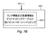 図7Bは、特定の実施形態に係る合成ステップの一例を示す概略フロー図である。例えば、4ブランチMIMOシステムに関連するランク情報及び変調情報をビットパターンへと合成する上記ステップ(S22)は、上記ランク情報及び上記変調情報を上の表1に示したテーブルのようなビットマッピングテーブルに従って上記ビットパターンへとマッピングするステップ(S22−1)、を含む。 FIG. 7B is a schematic flow diagram illustrating an example of a synthesis step according to a specific embodiment. For example, the step (S22) of combining rank information and modulation information related to a 4-branch MIMO system into a bit pattern includes a bit mapping table such as the table shown in Table 1 above. (S22-1) of mapping to the bit pattern according to