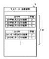 図5は、検査結果の一覧画面である。領域21には、検査日と、夫々の検査日に行われた検査の結果に対する総合評価が表示されている。ユーザが、「2014年8月25日の結果」という操作画像にタッチすると、図6の表示画面に遷移する。[Inspection result display screen in user terminal 3]