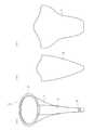 図1(c)に示される第2の弁葉7は,基本的には第1の弁葉5と同様に製造すればよい。一方,第2の弁葉を第1の弁葉よりも厚くしてもよい。そうすることで,2つの弁葉に剛性の相違が生まれ,効果的に血液の逆流を防止できることとなる。第1の弁葉の平均厚さをd1とし,第2の弁葉の厚さをd2とする。するとd1とd2は同じでもよい。一方,2つの弁葉の厚さが異なる場合,1.01d1≦d2≦3d1でもよいし,1.05d1≦d2≦2.5d1でもよいし,1.5d1≦d2≦2.5d1でもよいし,1.75d1≦d2≦2.5d1でもよい。図1(c)におけるL3は,図1(b)のL1と同程度とすればよい。また,第2の弁葉の下端33は,第1の弁葉の下端23と同程度の幅とすればよい。第2の弁葉の上部31は,リングの形状に合うようになだらかな起伏(凸部)31が存在する。また,第2の弁葉の上部には,幅が一定な部分である接続部位35が存在する。この部位は,第1の弁葉の接続部位25と縫い合わされてもよい。この例では,幅が一定の上部から下端33に向かうにしたがって曲線的に幅が狭くなる部位37が存在する。The